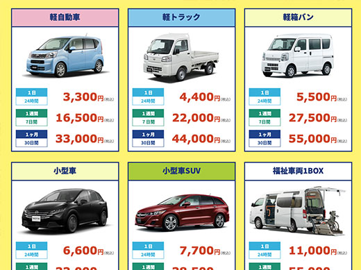 - 2025/07/23「お手軽・中古車レンタカー」ページを開設しました