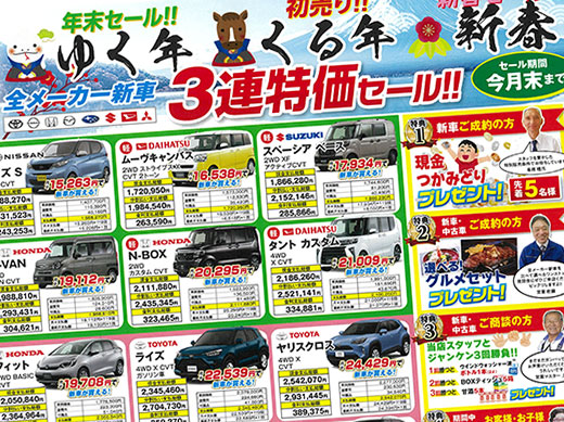 【12月・1月・2月】年末年始・ゆく年くる年・初春「新車・中古車3連特価セール」のお知らせ