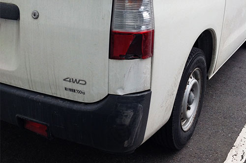 右後バンパー部の破損