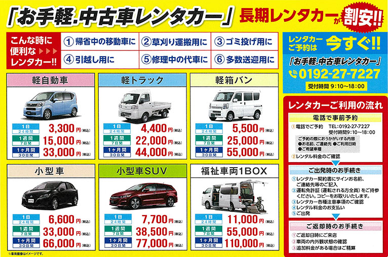 しかも、「長期レンタカー」としてご利用いただくと大変割安になっています。