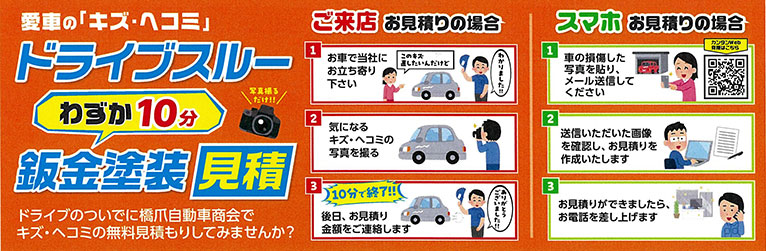 鈑金塗装のドライブスルー見積ご利用ください
