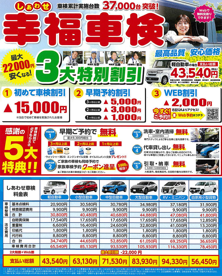 今年車検の皆さん!! お得な「幸福車検」のお知らせですNEW